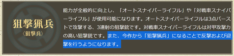 あと、援護射撃で狙撃兵も援護に参加するようになりました。でも弾丸がしっかり減ってしまうので有難迷惑なケースの方が多かったような。