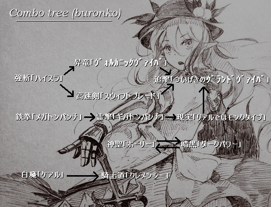 コンボが複雑なキャラはこんな感じで見られるようにしたらいいかなーと思ったんですが、どう表記したらいいものか‥‥。