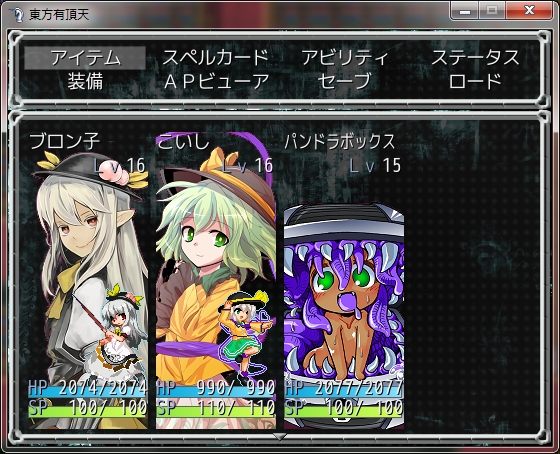 あと、装備はほとんど出来ないので素の能力値の影響が大きいです。